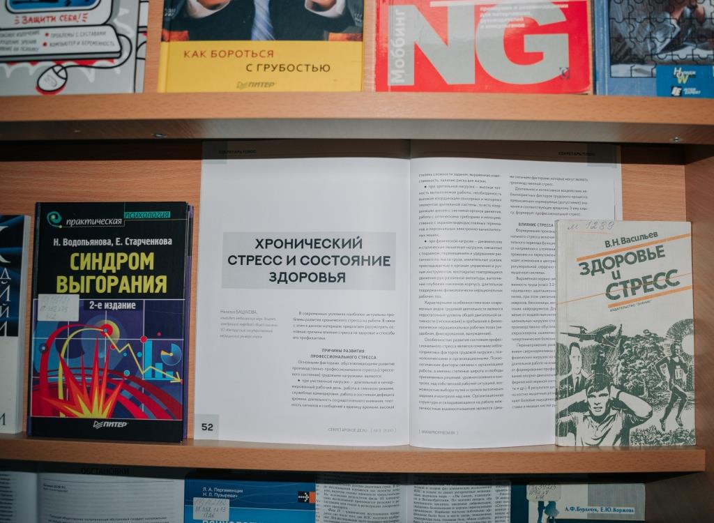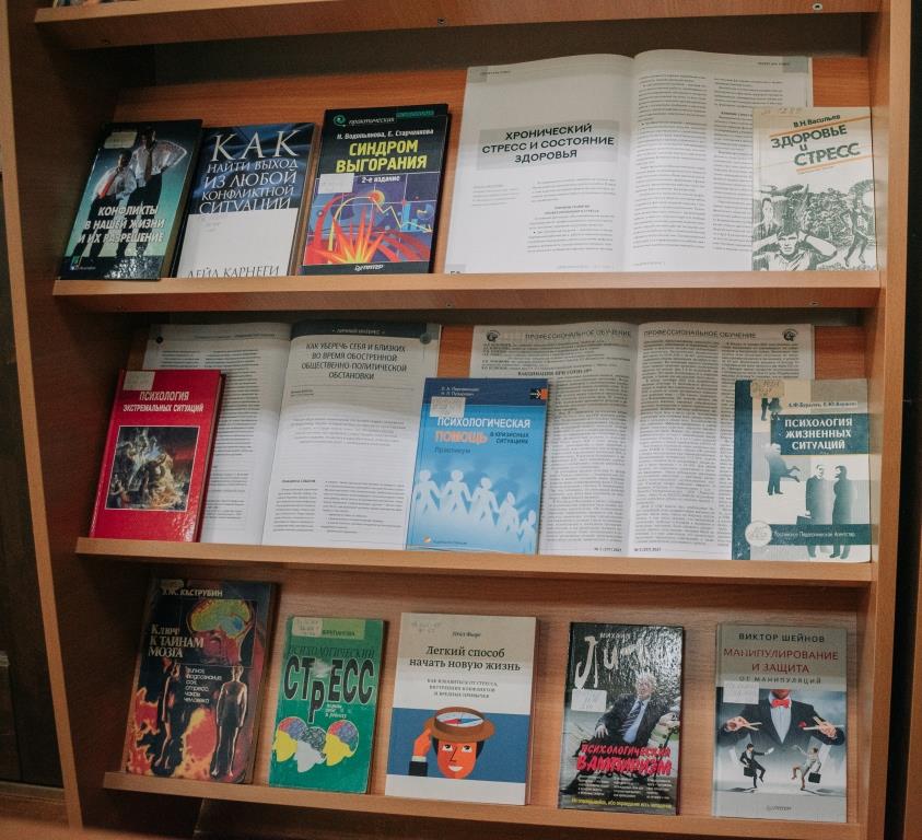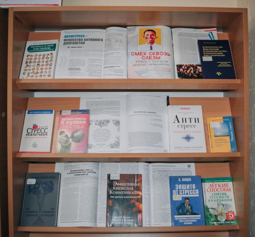 На выставе прадстаўлены матэрыялы пра псіхалогію стрэсу, прычыны яго ўзнікнення, метады вырашэння канфліктных сітуацый, пра сіндром выгарання і як справіцца з мобінгам. Цікавасць выклікаюць кнігі і артыкулы з часопісаў пра ўплыў стрэсавага стану на здароўе чалавека, спосабы прафілактыкі і кіравання ім.