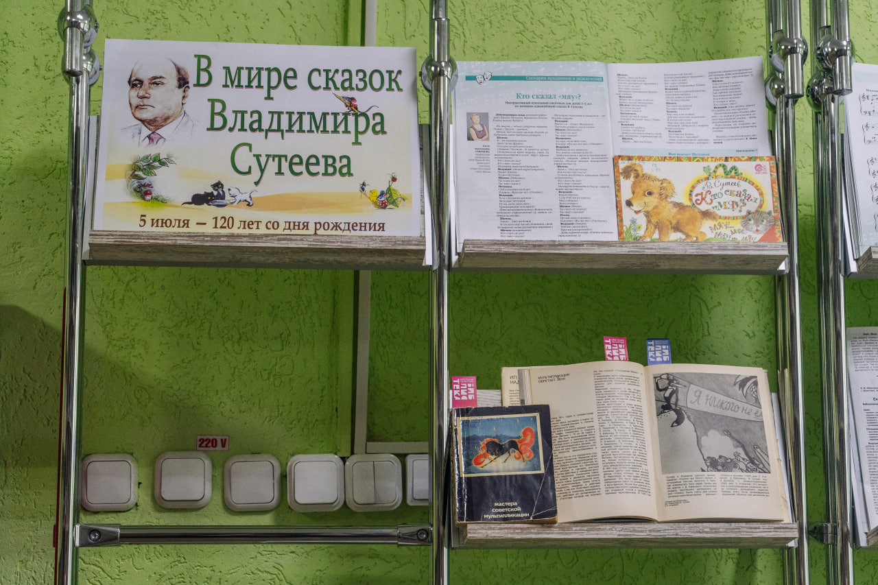 У экспазіцыі прадстаўлены больш за 20 дакументаў. Кнігі «Кадр за кадром» І. П. Іванова-Вано (Масква, 1980), «Художники детской книги» Л. С. Кудраўцавай (Масква, 1998), «Московские художники детской книги. 1900–1992» М. Чапкінай (Масква, 2008) пазнаёмяць чытача з жыццём і творчай дзейнасцю У. Р. Суцеева, раскажуць пра асаблівасці мультыплікацыйнага мастацтва. Прапануем наведаць выставу, якая будзе адкрыта для прагляду да сярэдзіны ліпеня.