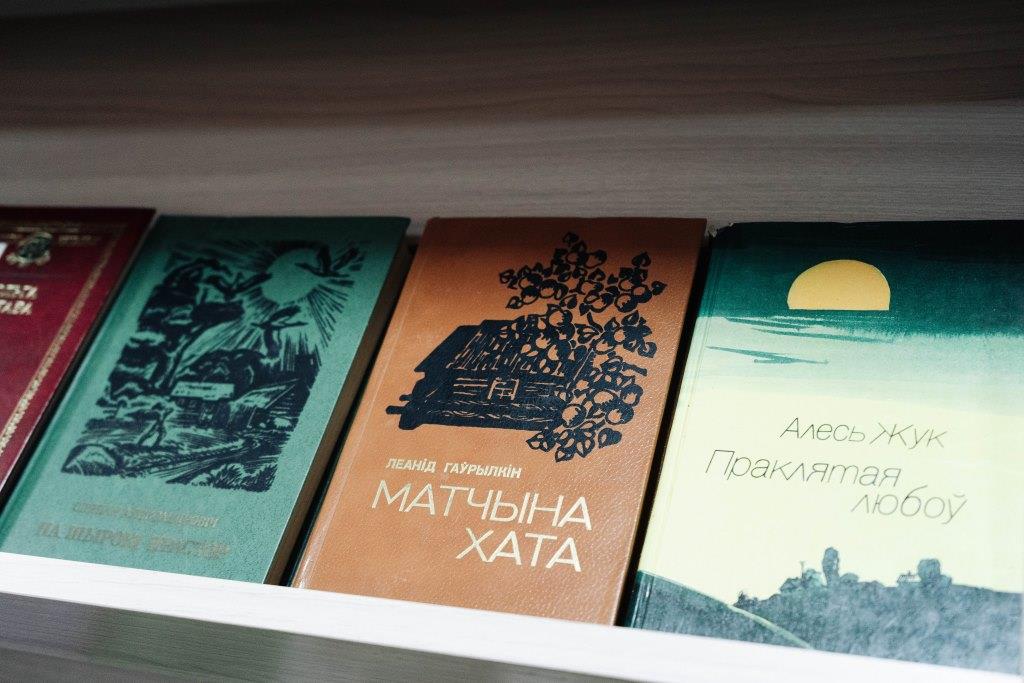 Адкрываюць экспазіцыю кнігі беларускіх аўтараў. Успомнім тэтралогію «Пачакай, затрымайся» (Мінск, 1975 г.) А. Васілевіч, аповесць М. Гарэцкага «Дзве душы» (Мінск, 2006 г.) і інш.