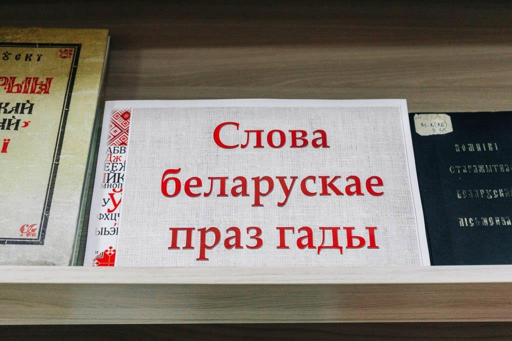Пачынаецца выстава раздзелам «Слова беларускае праз гады», які распавядае пра гісторыю беларускай мовы, пра яе складаны шлях даўжынёй у стагоддзе. Беларускія летапісы — адзін з першых жанраў старажытнай беларускай пісьменнасці. Яны даюць уяўленне аб тым, як ішло развіццё мовы, як яна абагашчалася і ўдасканальвалася. Менавіта на старабеларускай мове друкававаў кнігі Ф. Скарына, на ёй пісалі і выдавалі свае творы С. Будны, В. Цяпінскі, С. Полацкі і іншыя. Звярніце ўвагу на кнігі Г. Галенчанка «Францыск Скарына — беларускі і ўсходнеславянскі першадрукар» (Мінск, 1993), К. Тарасава «Памяць пра легенды» (Мінск, 1994), «Помнікі старажытнай беларускай пісьменнасці» (Мінск, 1975), А. Марціновіча «Хто мы, адкуль мы…» (Мінск, 1996), «Славутыя імёны Бацькаўшчыны» (Мінск, 2000) і інш.