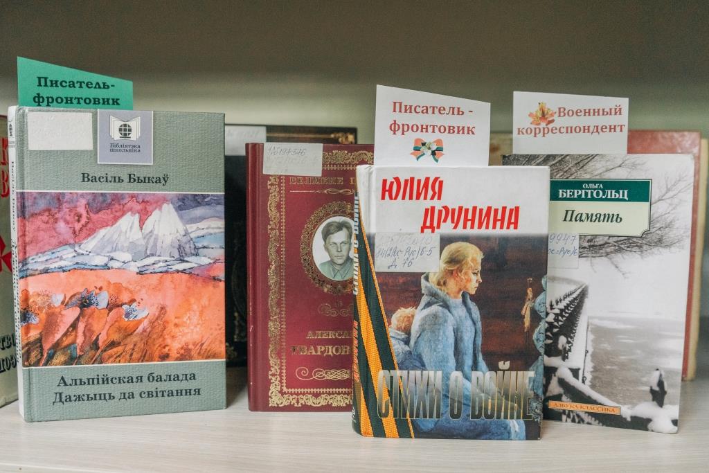 Тэма Вялікай Айчыннай вайны стала адной з галоўных тэм літаратуры XX стагоддзі. Раздзел выстаўкі «Пра вайну вершамі і прозай» знаёміць з мастацкімі кнігамі пісьменнікаў-франтавікоў. Асабліва цікавыя кнігі «Мёртвым не баліць», «Знак бяды» В. Быкава, «Блакадная кніга» А. Адамовіча, «Пракляты і забітыя» В. Астаф'ева, «Мой лейтэнант» Д. Граніна і інш.