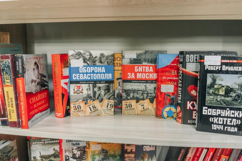 Раздзел «Доўгія вёрсты вайны» перадае ўспаміны ўдзельнікаў трагічных падзей. Экспануюцца кнігі «Такая мая вайна: успаміны беларускага партызана» В. Скарахода, «Успаміны пра вайну» Н. Нікуліна, «Мая вайна з 1941 па 1945» А. Фёдарава і інш. Акрамя гэтага, прадстаўлена серыя кніг «Ваенныя мемуары»: напрыклад , «Цяжкая навука перамагаць» Н. Бірукова, «Як я быў у нямецкім палоне» Ю. Уладзімірава і інш. Аглядаюцца кнігі «Аперацыя Баграціён. Вызваленне Беларусі», «Абарона Севастопаля. Поўная хроніка — 250 дзён і начэй »,« Бітва за Севастопаль. Апошні штурм» А. Нуждзіна, С. Рузаева, «Курская бітва, якую мы пачалі» П. Букейханава і інш. Гістарычны навукова-папулярны часопіс «Радзіма» знаёміць чытачоў з ваеннымі дакументамі: загадамі, узнагароднымі лістамі, пахаванкамі, лістамі, прадуктовымі карткамі .