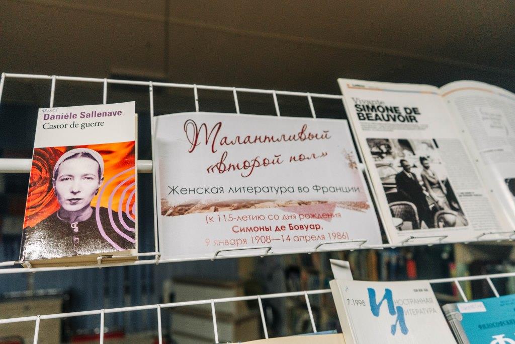 Аддзел выданняў на замежных мовах падрыхтаваў да юбілею Сімоны дэ Бавуар выставу «Таленавіты "другі пол". Жаночая літаратура ў Францыі». На выставе прадстаўлены творы вядомых французскіх пісьменніц, пачынаючы з XVII стагоддзя і да нашых дзён, а таксама крытычныя артыкулы, аглядна-аналітычныя і навукова-папулярныя выданні на французскай, рускай і англійскай мовах.