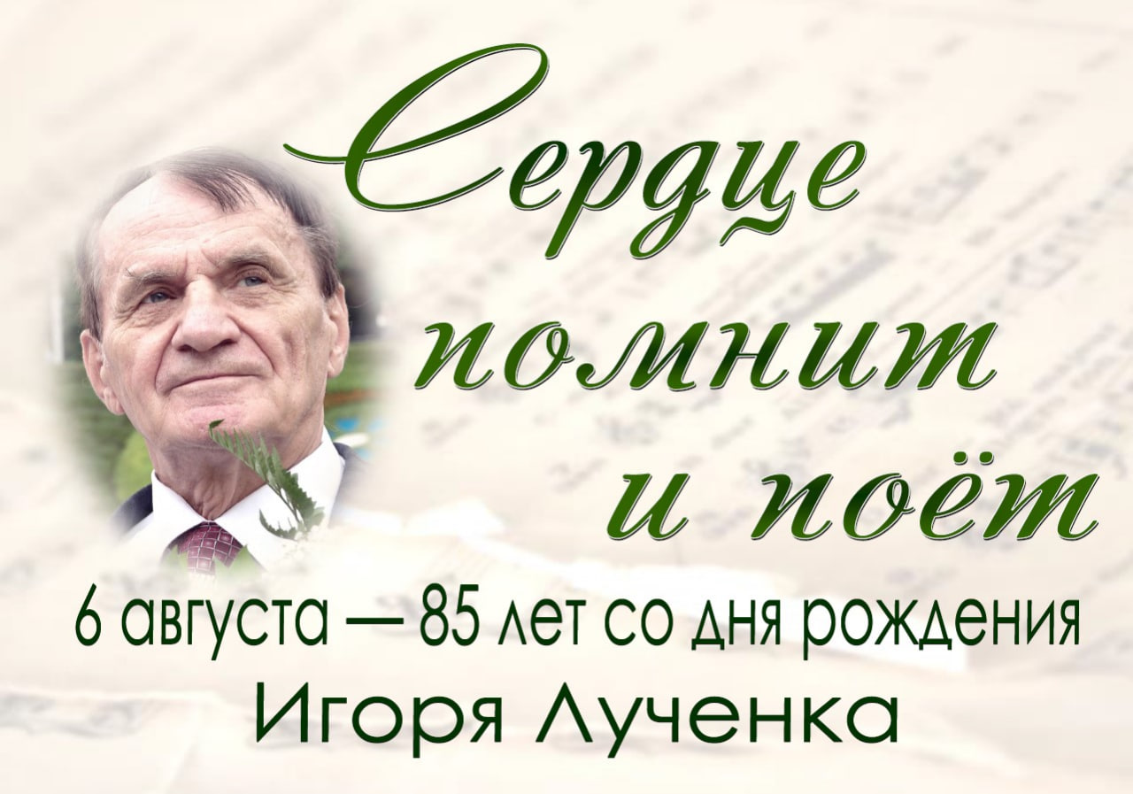 Аддзел літаратуры па мастацтве запрашае наведаць выставу «Сердце помнит и поёт», прысвечаную 85-годдзю з дня нараджэння кампазітара, народнага артыста СССР, лаўрэата Дзяржаўных прэмій СССР і Беларусі, грамадскага дзеяча — Ігара Лучанка.