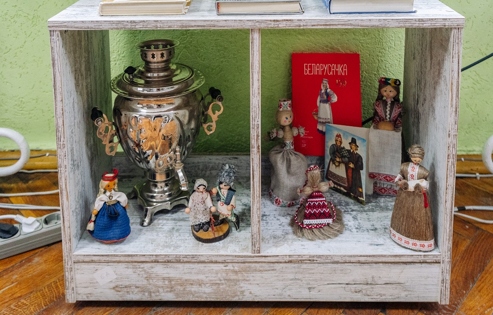 У экспазіцыі прадстаўлены кнігі, альбомы, перыядычныя выданні, паштоўкі, вінілавыя грампласцінкі.