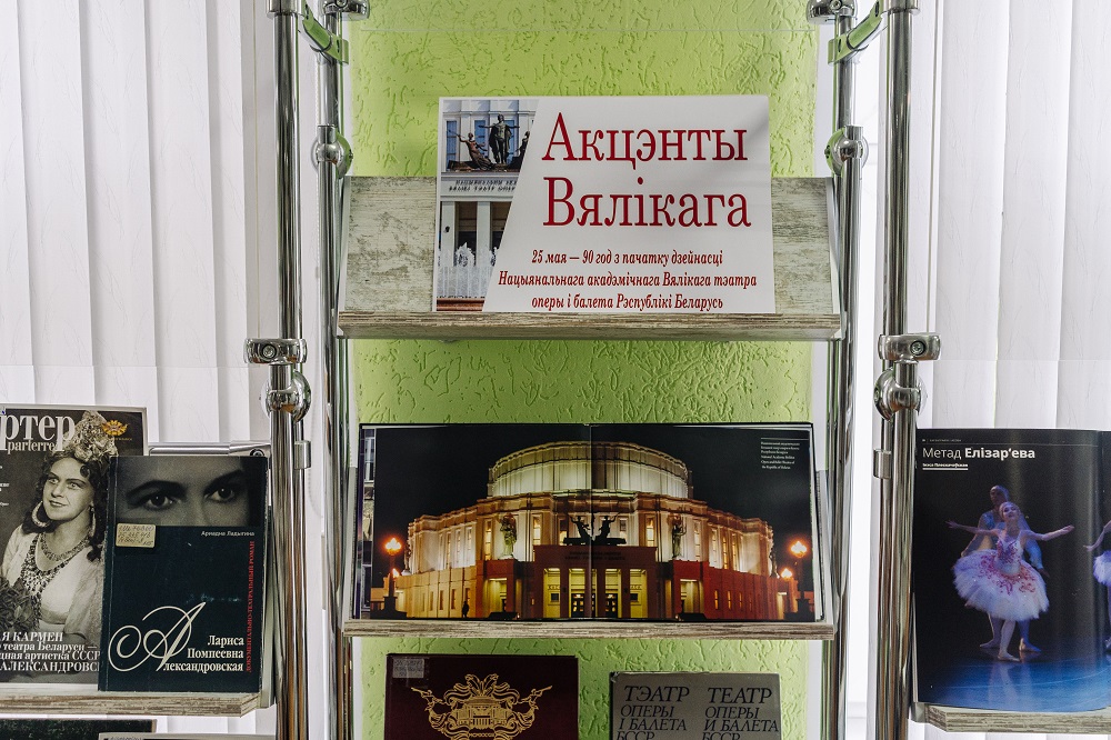 З 20 мая па 27 чэрвеня ў аддзеле літаратуры па мастацтве экспануецца выстава «Акцэнты Вялікага», прысвечаная 90-годдзю з пачатку дзейнасці Нацыянальнага акадэмічнага Вялікага тэатра оперы і балета Рэспублікі Беларусь.