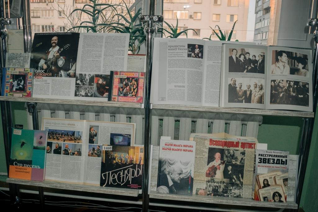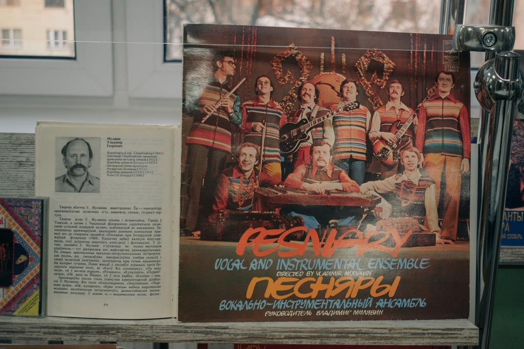 На экспазіцыі прадстаўлена больш за 40 выданняў: кнігі, часопісы, нотныя зборнікі, вінілавыя і кампакт-дыскі. «Песняры» выпусцілі 10 вінілавых дыскаў-гігантаў, 6 з якіх (1971 — «Ты мне вясною прыснілася», 1974 — «Алеся», 1978 — «Песняры III», 1979 — «Гусляр», 1983 — «Зачарованная моя», 1985 — «Через всю войну») ёсць у фондзе аддзела.