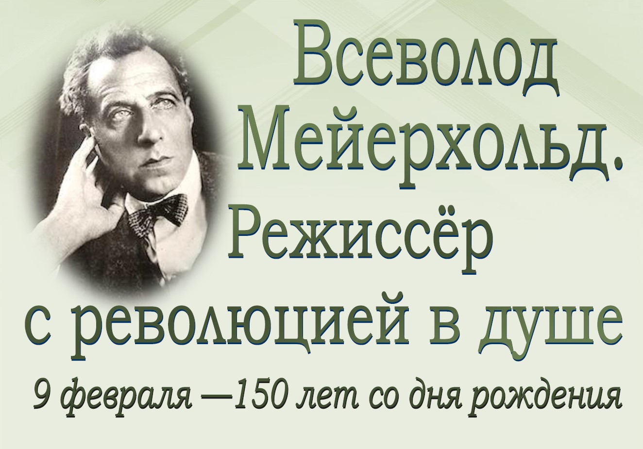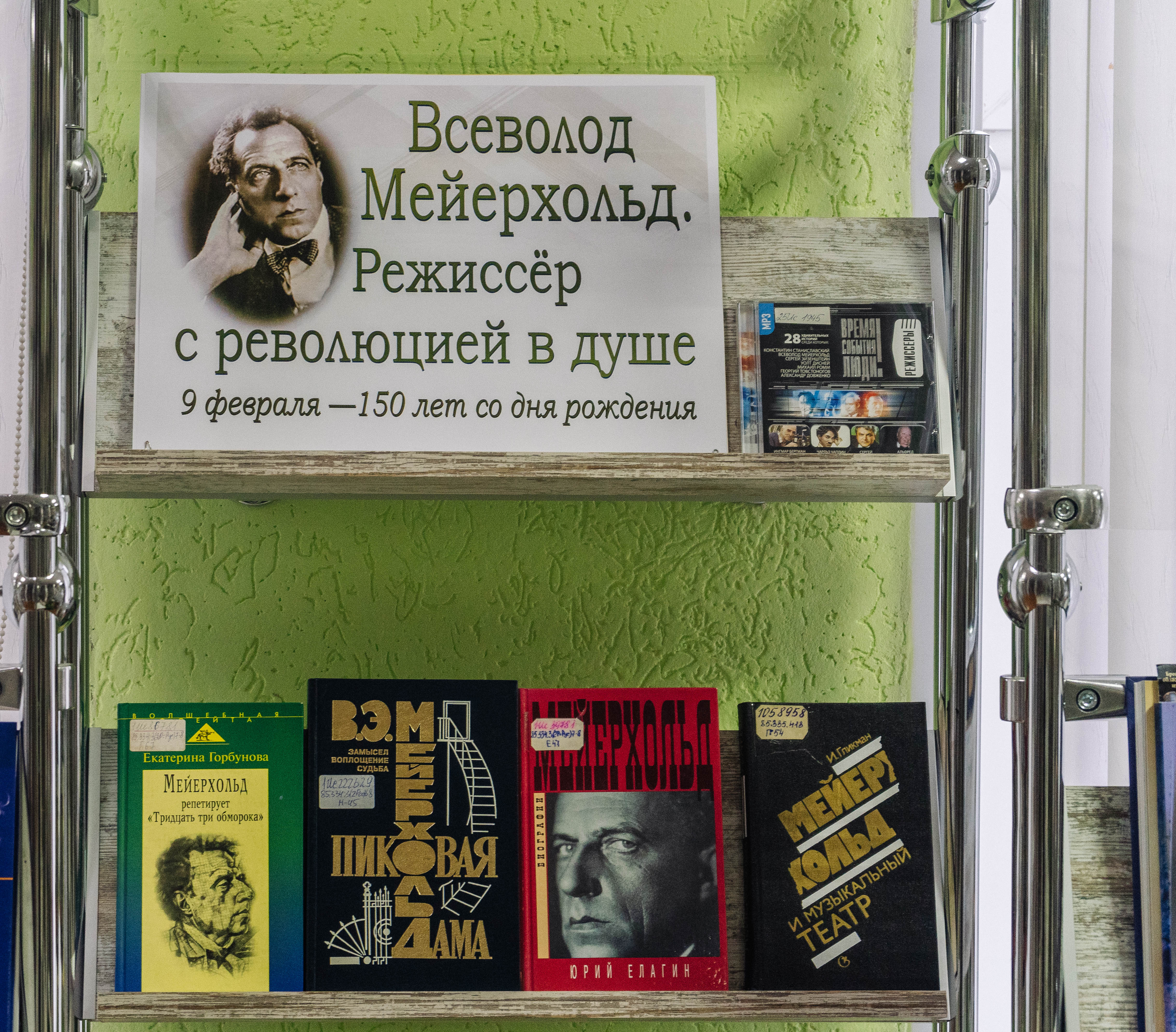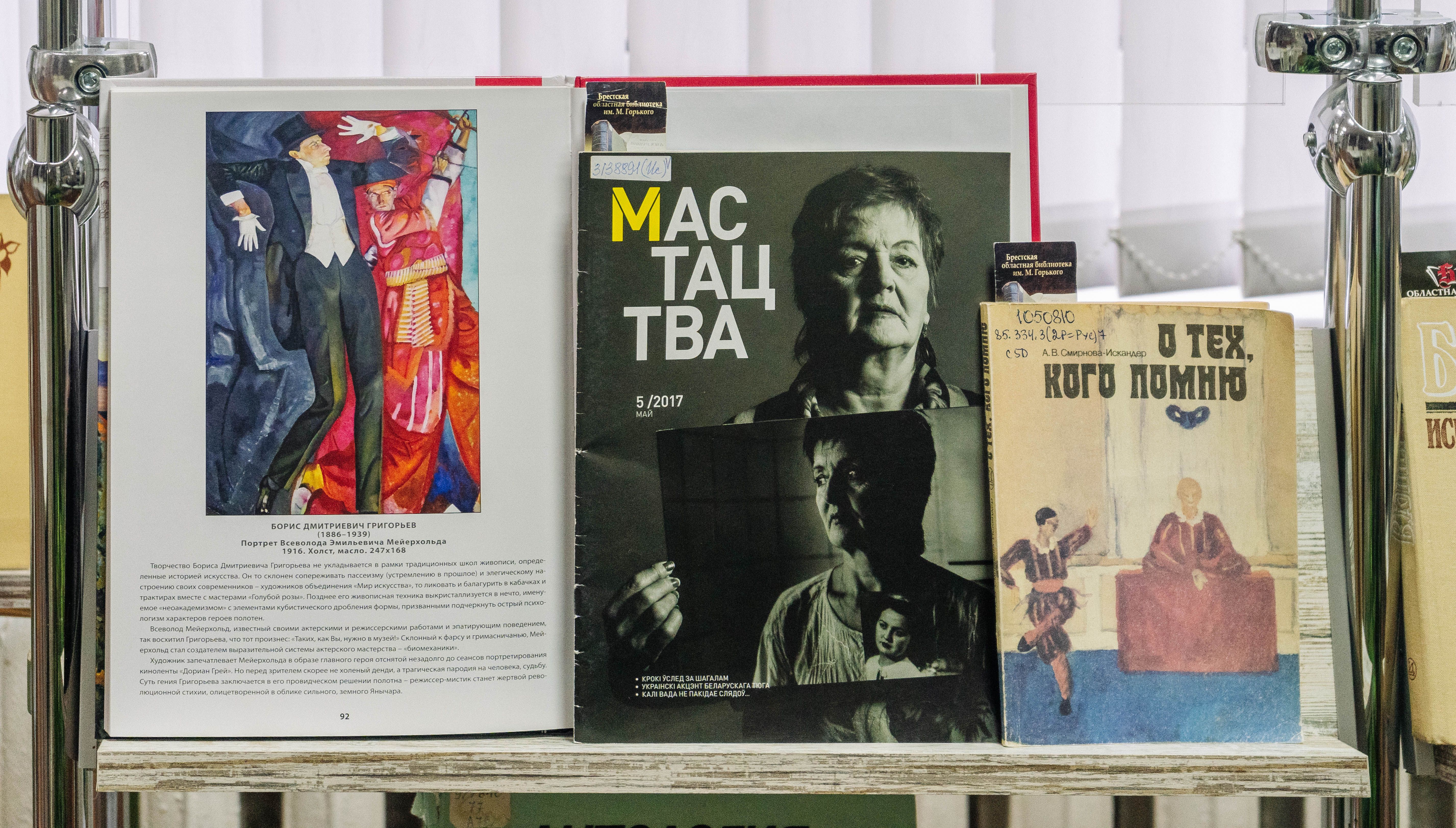 З 6 лютага 2024 г. у аддзеле літаратуры па мастацтве Брэсцкай абласной бібліятэкі імя М. Горкага дзейнічае выстава «Всеволод Мейерхольд. Режиссёр с революцией в душе», прысвечаная 150-годдзю з дня нараджэння рускага тэатральнага рэжысёра, акцёра і педагога. Усевалад Меерхольд адзін з першых авангардных рэжысёраў. Ён эксперыментаваў з дэкарацыямі і акцёрскай тэхнікай, выкарыстоўваў уласныя рэжысёрскія прыёмы і вывучаў традыцыі старадаўніх тэатраў. Пасля рэвалюцыі ён напісаў праграму «Театральный Октябрь» і стварыў сістэму практыкаванняў для акцёраў «биомеханика».