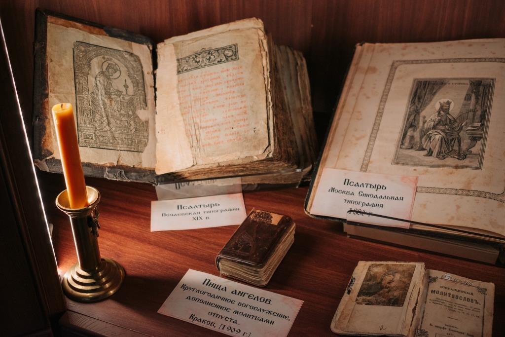 Наведвальнікі ўбачаць калекцыю богаслужбовых кніг XIX – пачатку XX ст. Гэта служэбнікі, часасловы, псалтыры, малітоўнікі.