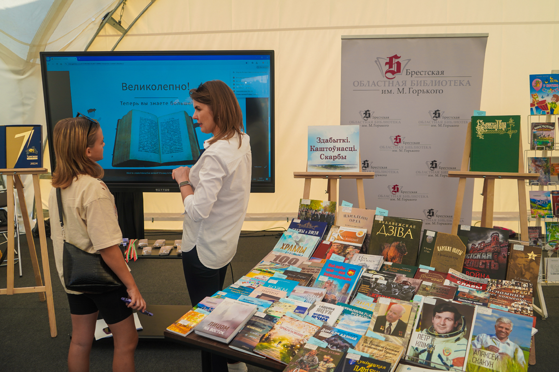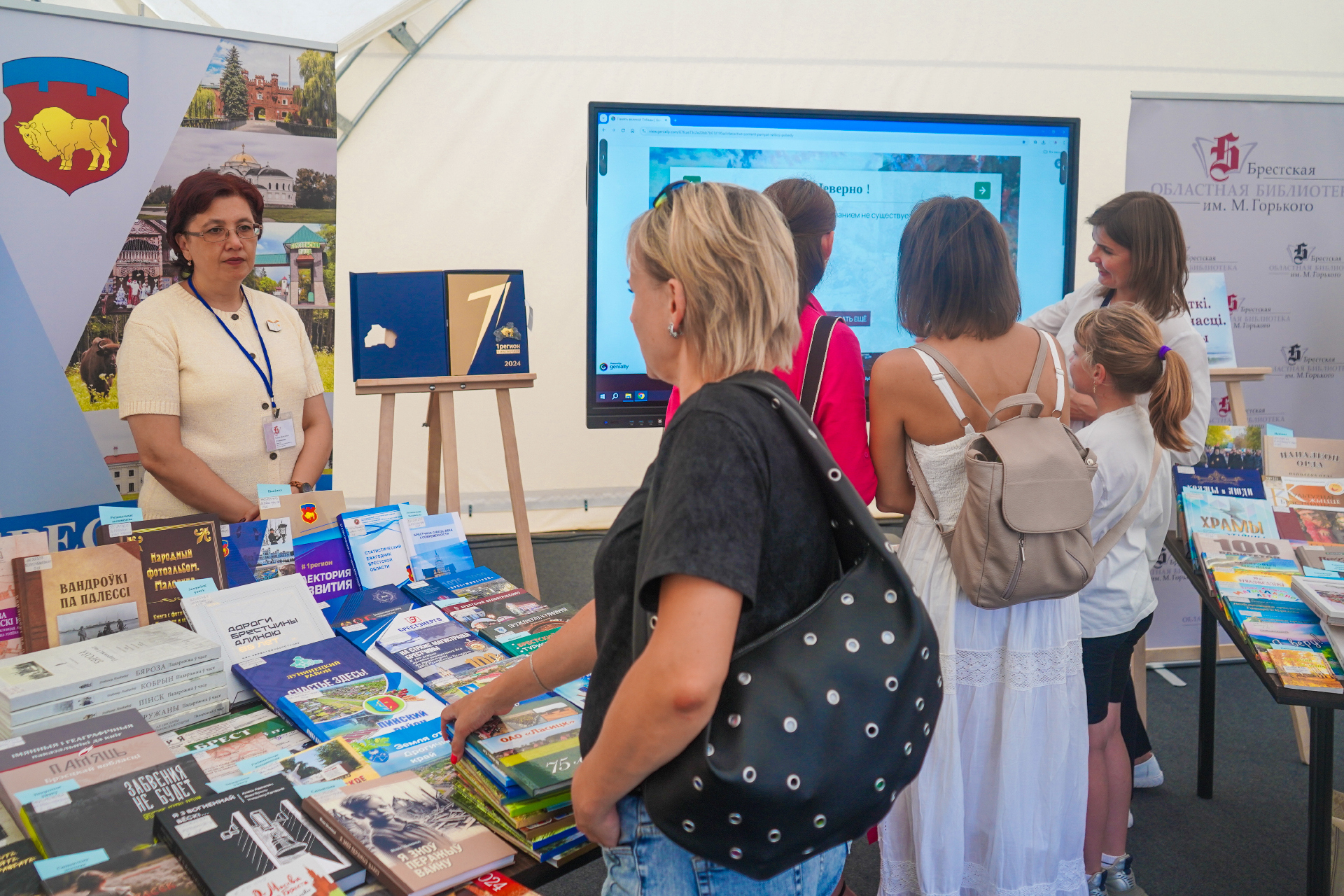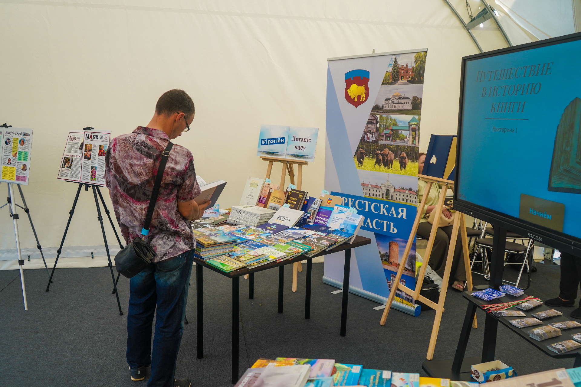 Экспазіцыя абласной бібліятэкі прадставіла малую частку новых выданняў, якія адлюстроўваюць сацыяльна-эканамічныя, гісторыка-культурныя дасягненні, брэнды і асаблівасці рэгіёна. Сярод асабліва цікавых — зборнік навуковых прац «Шарашова і Пружанскі край: фальклорная, архітэктурная і мастацкая спадчына рэгіёна» (Мн, 2025), манаграфія Антона Барашкі «Партизанское движение в Березовском районе» (Мн., 2025), «Забвения не будет: Брестские сёстры Хатыни»; па-майстэрску аформленае выданне да 85-годдзя Брэсцкай вобласці (Брэст, 2025). Прыкоўвала погляды і факсіміле Георгія Карцова «Беловежская пуща», выдадзенае да 600-годдзя Нацыянальнага парка. Дарэчы, арыгінал захоўваецца ў сектары рэдкай кнігі Брэсцкай абласной бібліятэкі імя М. Горкага.