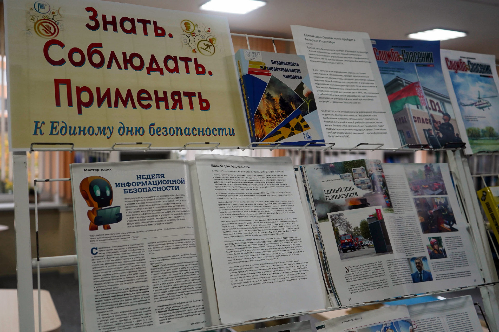 Да Адзінага дня бяспекі аддзел перыядычных выданняў Брэсцкай абласной бібліятэкі імя М. Горкага падрыхтаваў выставу «Ведаць. Выконваць. Ужываць», на якой прадстаўлены матэрыялы па ахове працы, бяспецы жыццядзейнасці чалавека і па надзвычайных сітуацыях прыроднага, тэхнагеннага і сацыяльнага характару.