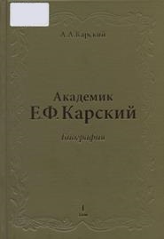 Карский, А. А. Академик Е. Ф. Карский биография А. А. Карский ; [редколлегия А. Н. Карлюкевич и др.]. - Минск Полиграфкомбинат им. Я. Коласа, 2019 Т. 1. - 603 с., [12] л. ил., портр., факсим.
