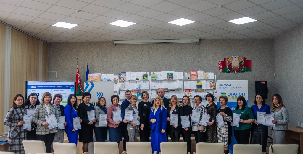 Кроме того, специалист по сопровождению программного обеспечения Регионального центра правовой информации Брестской области А. Н. Левчук провёл обучающий курс по работе с информационно-поисковой системой «ЭТАЛОН» и иным информационно-правовым ресурсам государственной системы правовой информации Республики Беларусь. По итогу обучения всем директорам были вручены сертификаты.