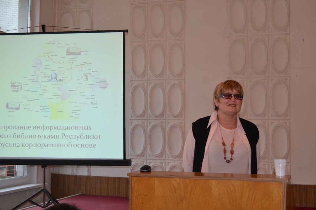 В ходе работы были заслушаны доклады сотрудников Национальной библиотеки Беларуси. В их числе Т. В. Кузьминич выступила с докладом на тему: «Формирование информационных ресурсов библиотеками Республики Беларусь на корпоративной основе», а также познакомила всех присутствующих с изданиями серии «БиблиоКонсультант», выпускаемой Национальной библиотекой Беларуси. Директор «НПФ «ИНЕАК» И. В. Майсак подробно рассказала о корпоративной системе каталогизации в регионах на основе системы формата BELMARC (на базе ПО ALISWEB).