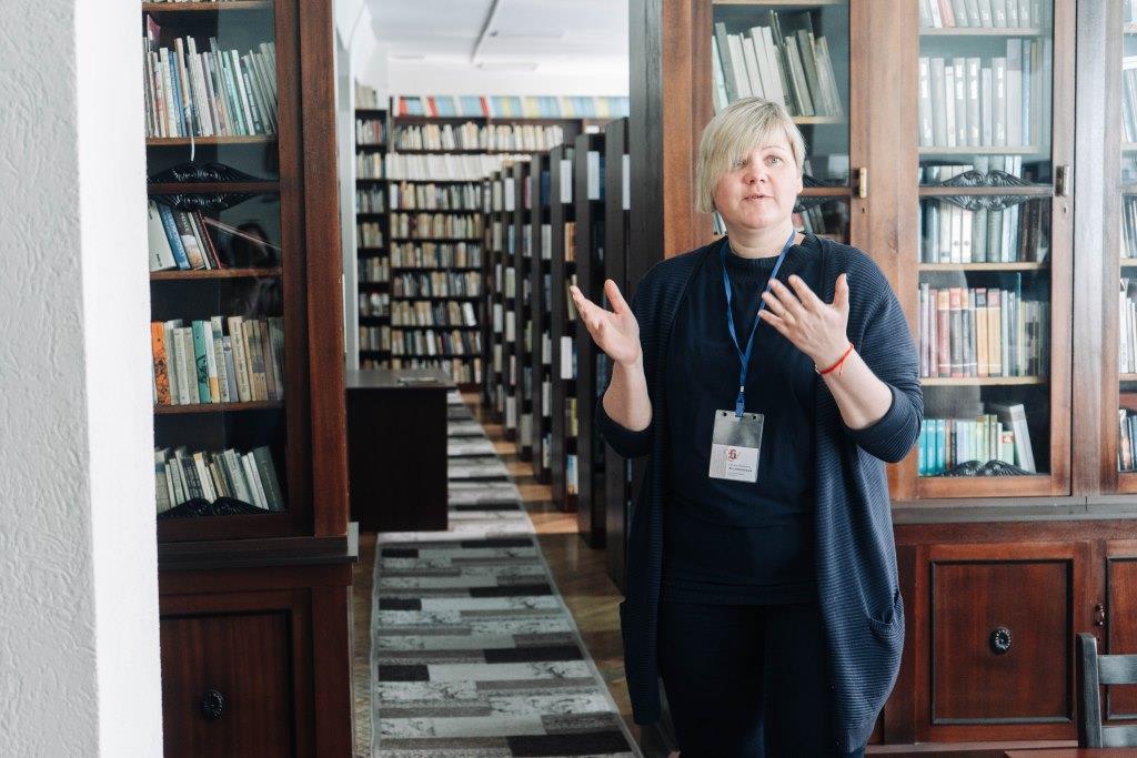 Кроме того, во время экскурсии участники совещания познакомились с работой структурных подразделений Брестской областной библиотеки им. М. Горького. В завершение ведущий библиотекарь отдела абонемента Н. А. Ревенко провела обзор книжной выставки «Литературное Зазеркалье: герои книг и их прототипы», а зав. отделом редкой книги Е. А. Пинкевич презентовала образовательно-просветительский проект «История в переплётах».