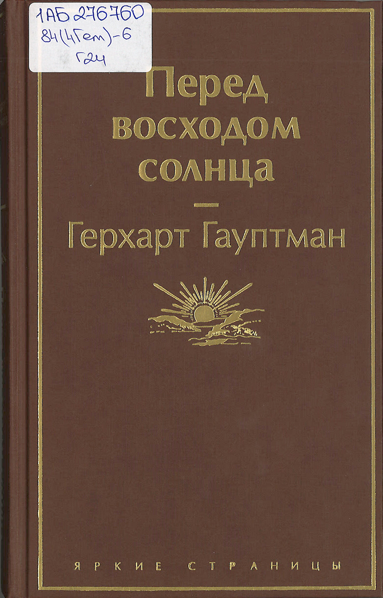 Гауптман, Г. Перед восходом солнца / Герхарт Гауптман ; [перевод с немецкого Г. Снимщиковой, К. Бальмонта]. – Москва : Эксмо, 2023. – 316, [2] с.