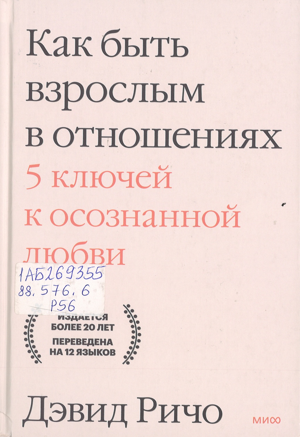 Как быть взрослым в отношениях. 5 ключей к осознанной любви / Дэвид Ричо ; пер. с англ. Е. Петровой. – Москва : Манн, Иванов и Фербер, 2022. – 352 с. – (Любовь и отношения. Лучшие книги для пар).