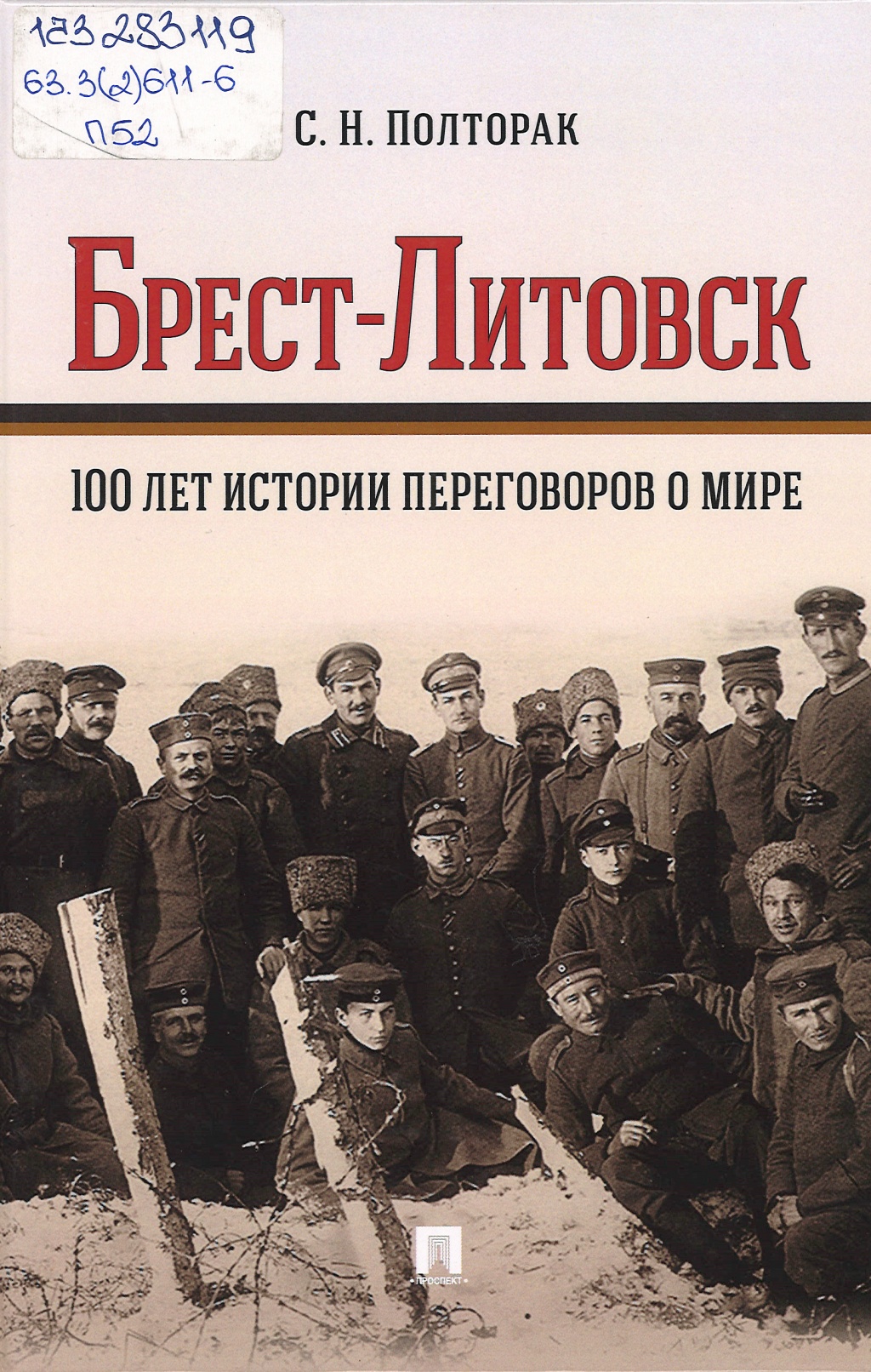 Полторак, С. Н. Брест-Литовск. 100 лет истории переговоров о мире: монография / С. Н. Полторак ; научный редактор В. В. Калашников. – Москва : Проспект, 2024. – 316 с.