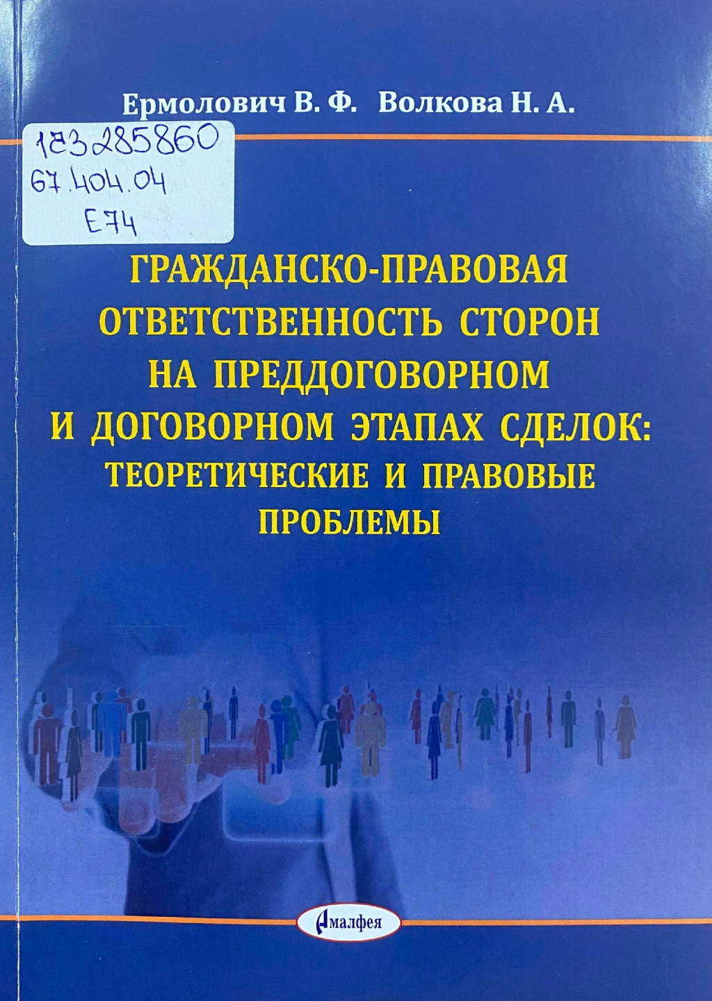 Ермолович, В. Ф. Гражданско–правовая ответственность сторон на преддоговорном и договорном этапах сделок: теоретические и правовые проблемы: монография / Ермолович В. Ф., Волкова Н. А. ; под общей редакцией В. Ф. Ермоловича. – Минск : Амалфея, 2025. – 271 с.