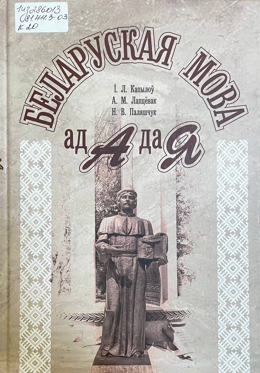 Капылоў, І. Л. Беларуская мова ад А да Я / І. Л. Капылоў, А. М. Лапцёнак, Н. В. Паляшчук ; [прадмова У. Р. Гусакова] ; Нацыянальная акадэмія навук Беларусі, Цэнтр даследаванняў беларускай культуры, мовы і літаратуры, Інстытут мовазнаўства ім. Я. Коласа. – Мінск : Беларуская навука, 2024. – 166, [1] с.