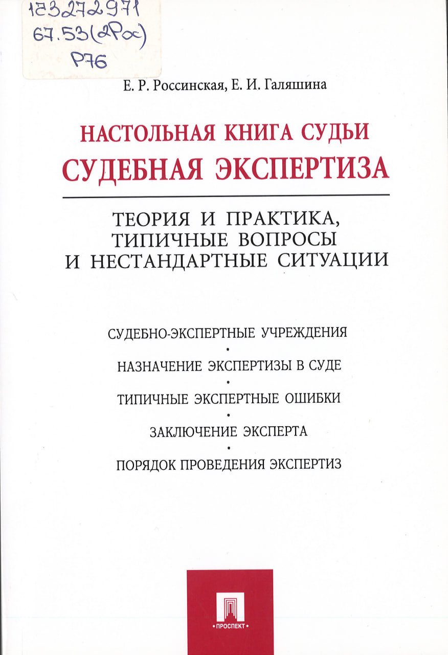 Настольная книга судьи : судебная экспертиза / Е. Р. Россинская, Е. И. Галяшина. – Москва : Проспект, 2021. – 458 с.