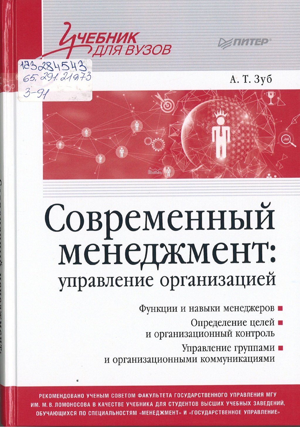 Зуб, А. Т. Современный менеджмент: управление организацией : учебник для студентов высших учебных заведений, обучающихся по специальностям «Менеджмент» и «Государственное управление» / А. Т. Зуб. – Санкт-Петербург [и др.] : Питер, 2024. – 320 с. – (Серия «Учебник для вузов»).