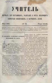 Учитель : журнал для наставников, родителей и всех желающих заниматься воспитанием и обучением детей. – Санкт-Петербург : Издаваемый И. Паульсоном и Н. Весселем, 1861–1870.